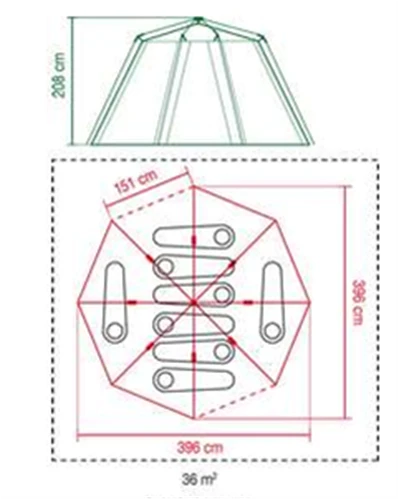 • Six of the eight sides open up completely, allowing lots of air and light into the tent