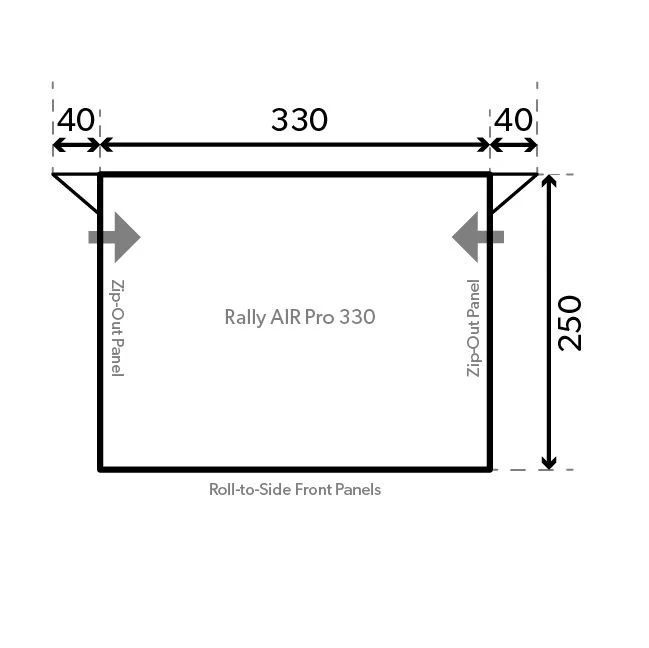 • Roll to the side front panels with veranda feature