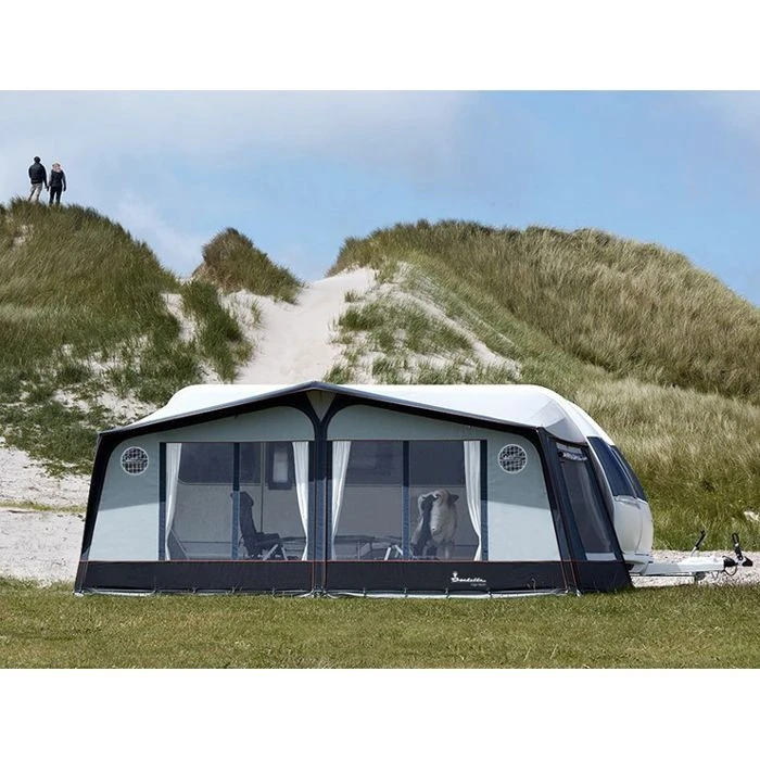 Ventilated, large fly mesh net widows on both side panels with an outside zipped window cover keep unwanted flying insects whilst cooling the awning on hot days and nights.