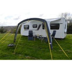 Maypole’s 5 panel single point inflation windbreak provides privacy and protection from the wind. The sturdy airframe is quick and easy to inflate via a single point air tube. The windbreak includes removable window covers for added privacy, and midway pegging points to keep your pets safely inside. Kadar strips on either end allow for caravan awning rail attachment, giving you extra stability. Hand pump, guy ropes, pegs and a compact carry bag are all included.