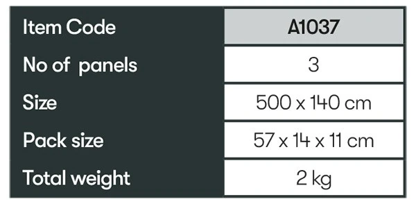 This windbreak is not only amazing value for money, but such a small pack size makes it perfect for those with limited space, the budget conscious as well as any Falcon awning owner.