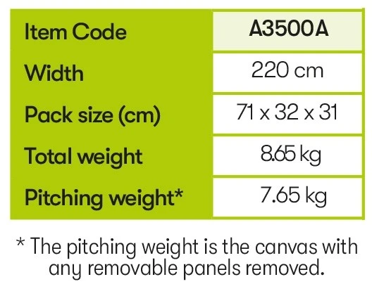 The Falcon Air range has a roll up front panel that can be used as a canopy when used in conjunction with steel canopy poles.
